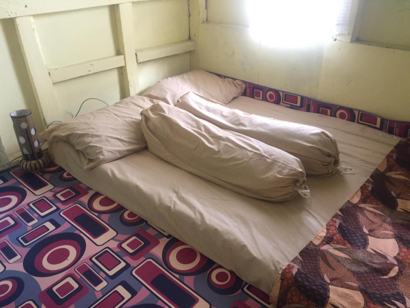 Kamar tidur yang tersedia tanpa ranjang, diatas papan kayu