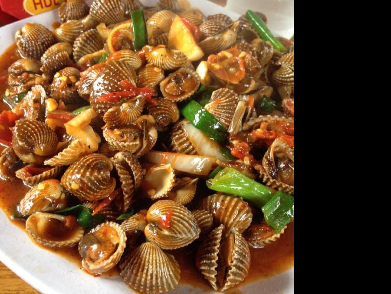 berbagai jenis olahan kerang yang dapat di ambil langsung oleh pengunjung di tepi laut Wisata Denda Seruni