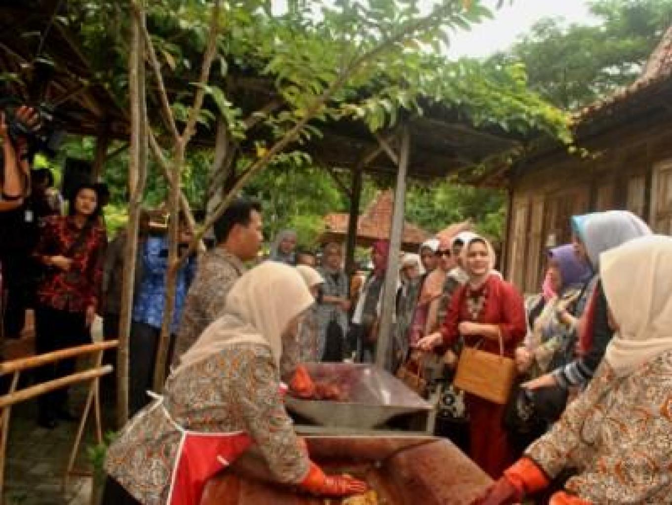 Foto: Ibu Riana Jokowi menyaksikan praktek pewarnaan Alam di sentra batik Giriloyo.
